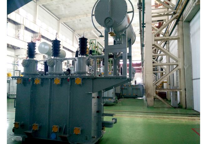 三相油浸式变压器的构造是由闭合铁芯和套在铁芯柱上的绕组组成。此外,还有油箱、储油柜、套管、呼吸器、防爆管、散热器、分接开关、瓦斯继电器、温度计、净油器等。